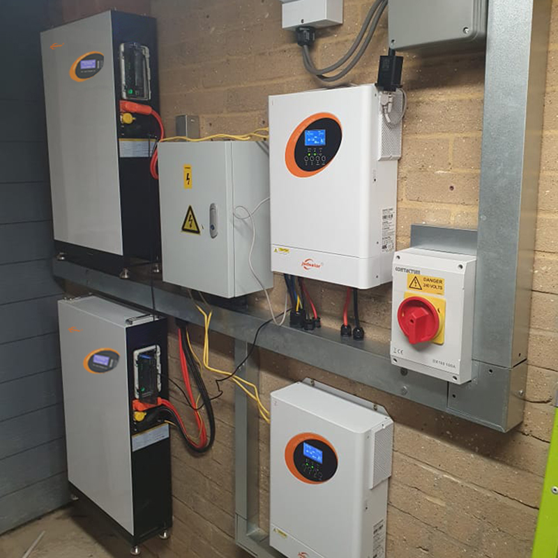 11KW hybrid off grid solar power system with 20kwh lithium battery ,complete solutions design . Storage batteries , Inverter with MPPT Charger ,PV Structure, PV Modules, DC Cabling, AC Cabling installed in UK